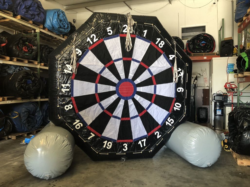 New for 2018, We are excited to release this exciting and fun new game. You can choose 2 of the 3 games, Kick Darts, Kick Baseball, and/or Movie Screen. This fun interactive game combines kickball and darts/baseball into one inflatable fun time. Players kick a Sticky Soccer ball onto the giant inflatable Dart board or baseball field to see which point they can score. Includes three (3) balls for darts and/or three (3) balls for baseball. Movie screen does NOT include sound equipment or projector. Must rent seperately! Great for sporting events, corporate events, fundraisers, or party rental businesses for backyard events. Good for all ages.